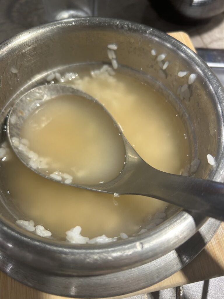 After you scoop out all the rice, they pour water in to make nurungji (scorched rice). This is amazing! When you’re feeling full from all the meat, a spoonful of nurungji is just… heaven 🤤